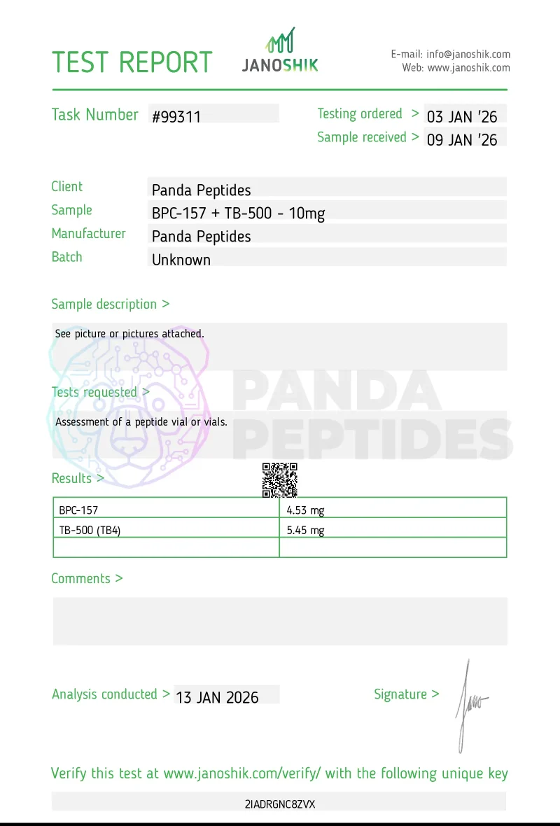 BPC-157 + TB-500 dual-peptide blend · High purity · Janoshik verified · Lyophilized powder