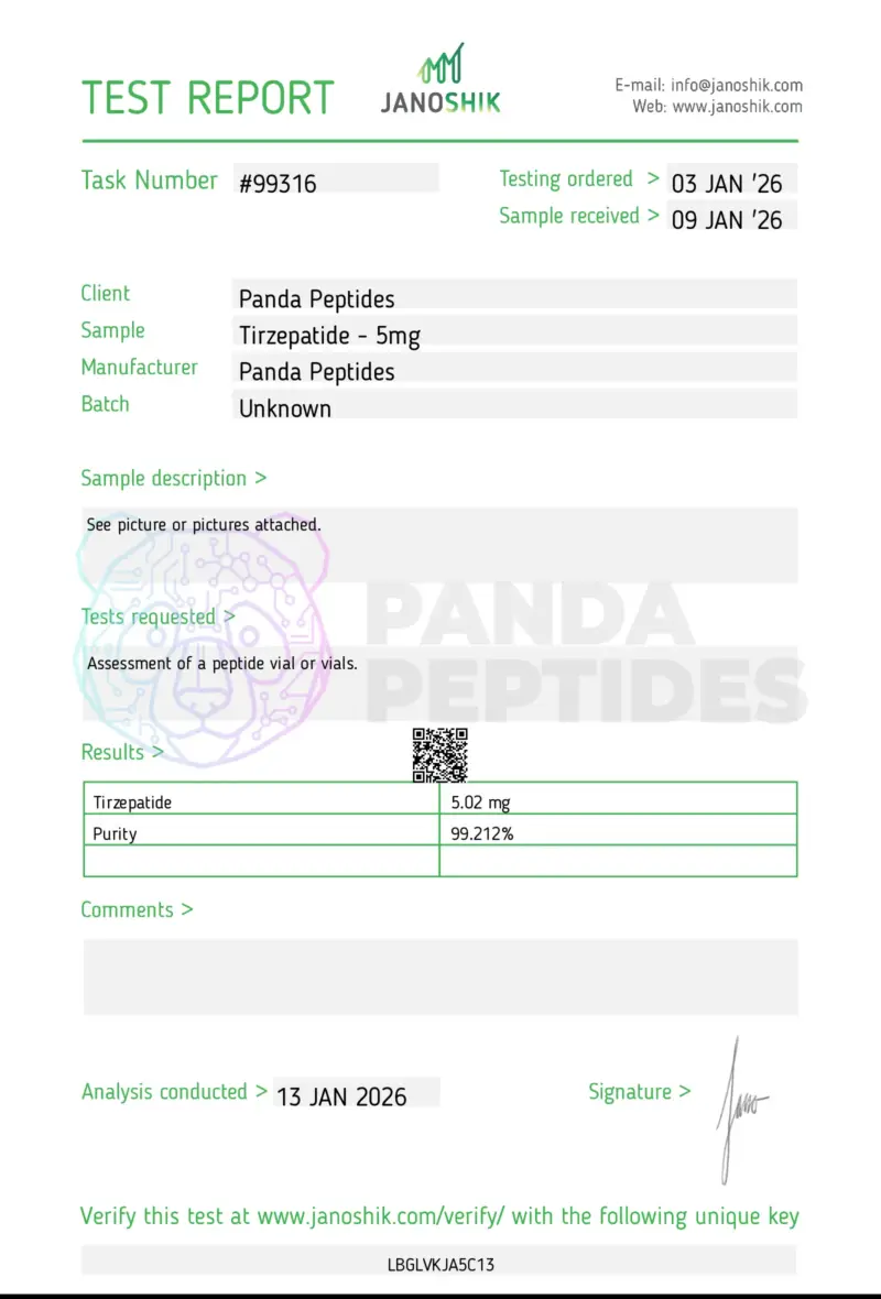 Dual GIP/GLP-1 receptor agonist · 39-amino acid peptide · >99% purity · Janoshik verified · Lyophilized powder